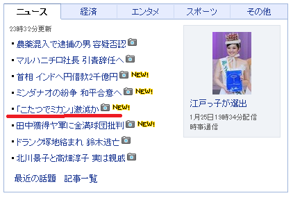やほーTOPに「『こたつでミカン』激減か」ってニュースがあったの。