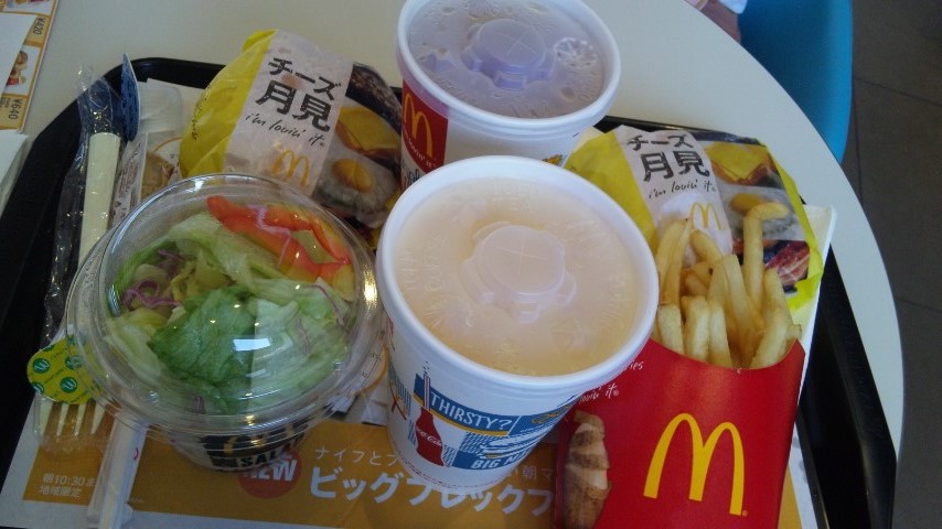 連れはポテト、わたしはサラダをセットにして、ご一緒に