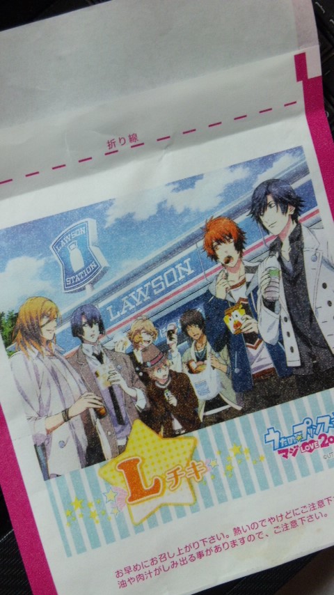 今ローソンでLチキ買うと、『うた☆プリ』イラストの袋に入ってくるんだわ。