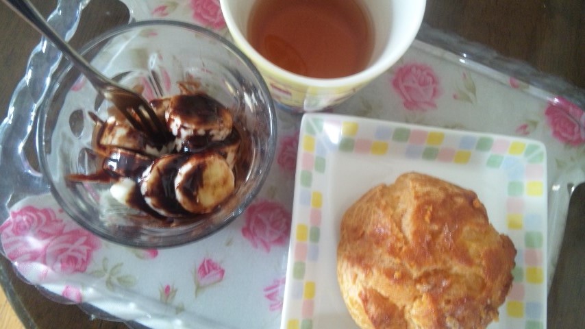 チョコバナナとシュークリームと紅茶。
