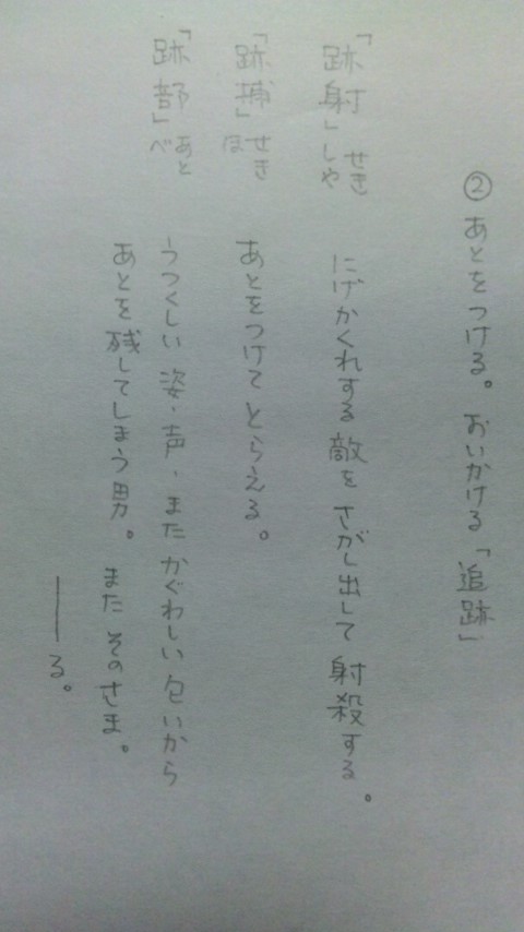 「跡捕」セキホ あとをつけて捕える。