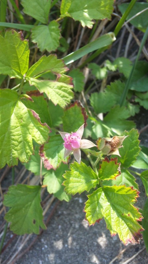 我が家の駐車場横の石垣に今年も苗代イチゴが順調に這っています。