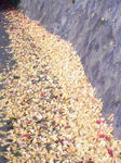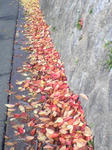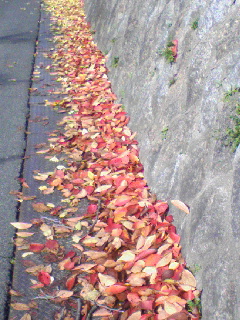 道路の隅に自然と集まった落ち葉達は